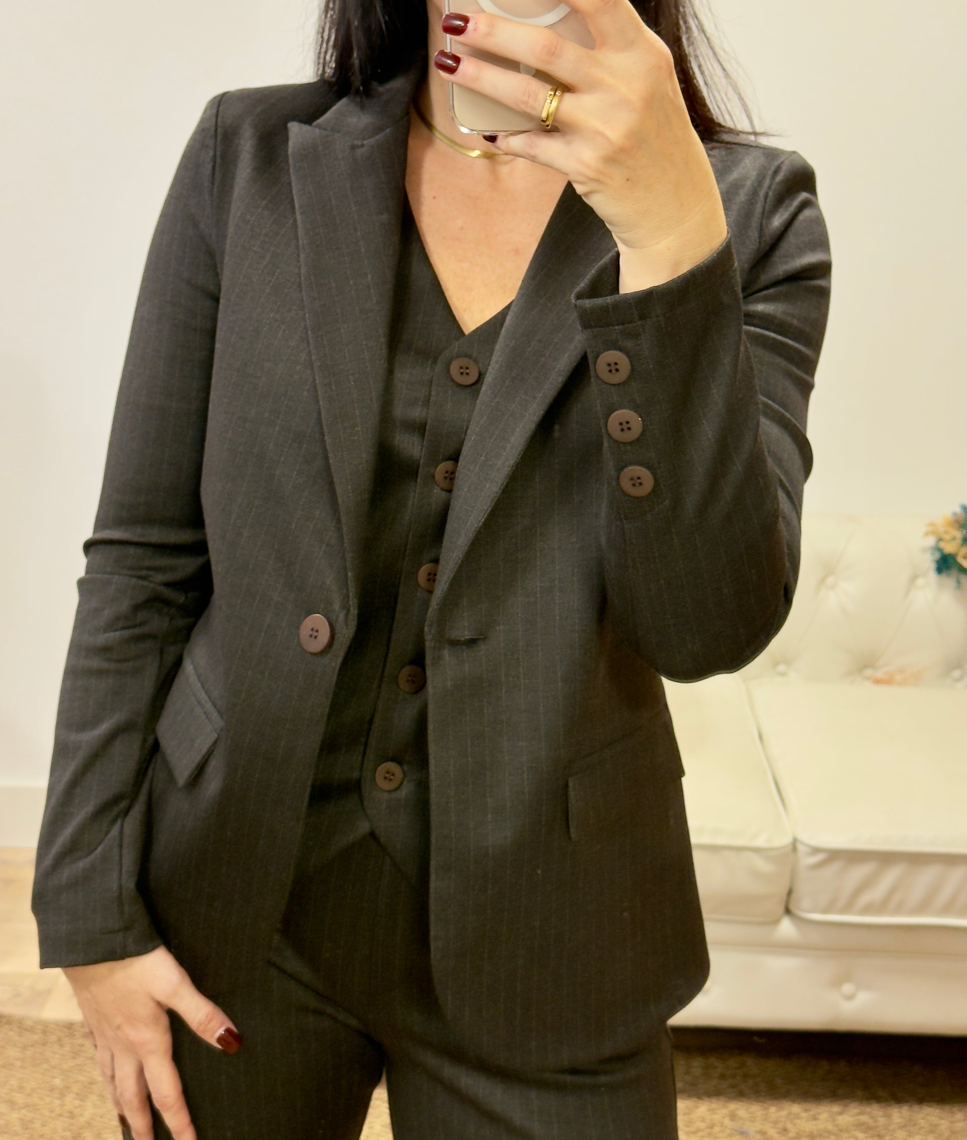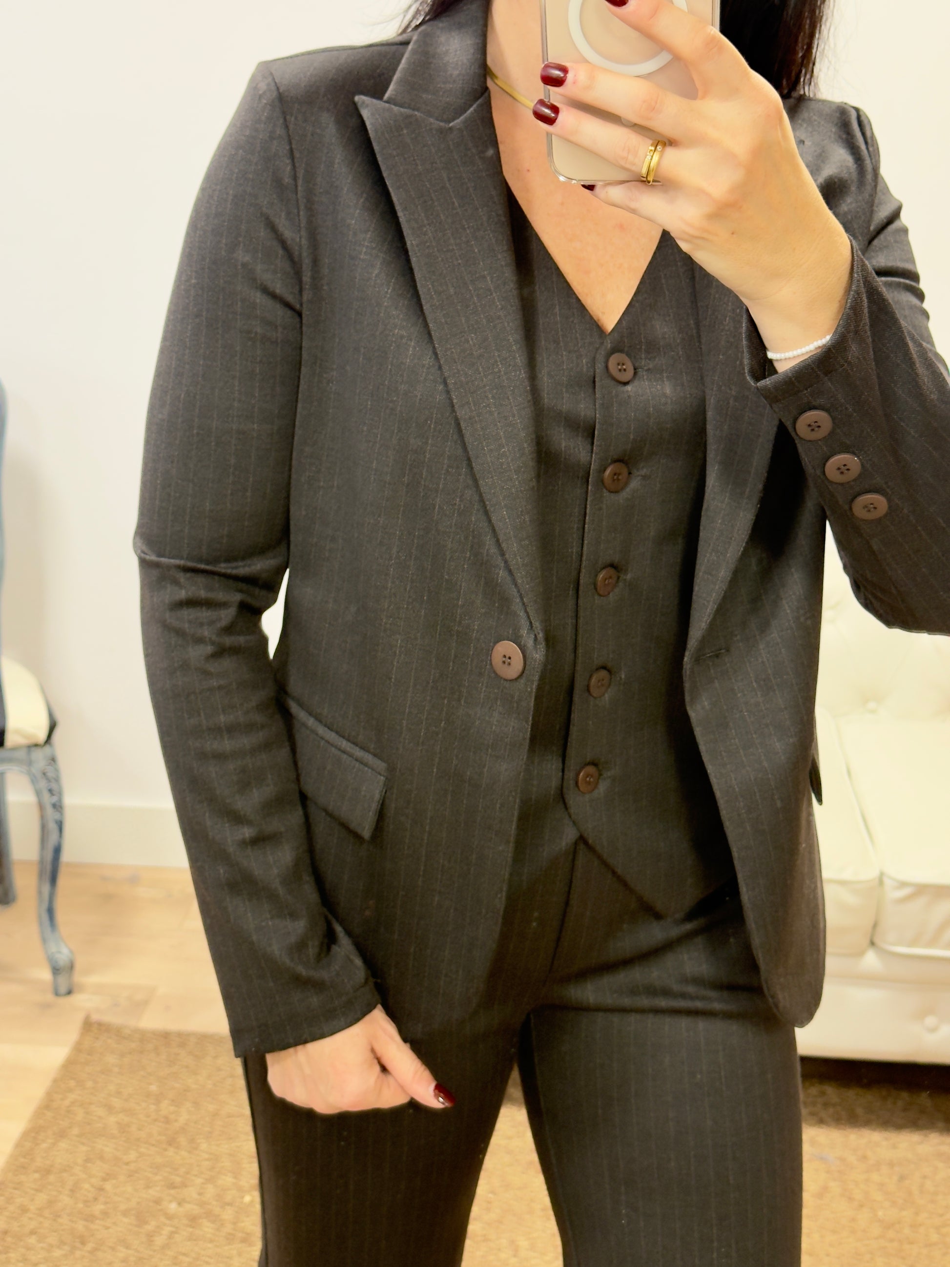 Americana de punto elástico. Sin forro. Color marrón oscuro.