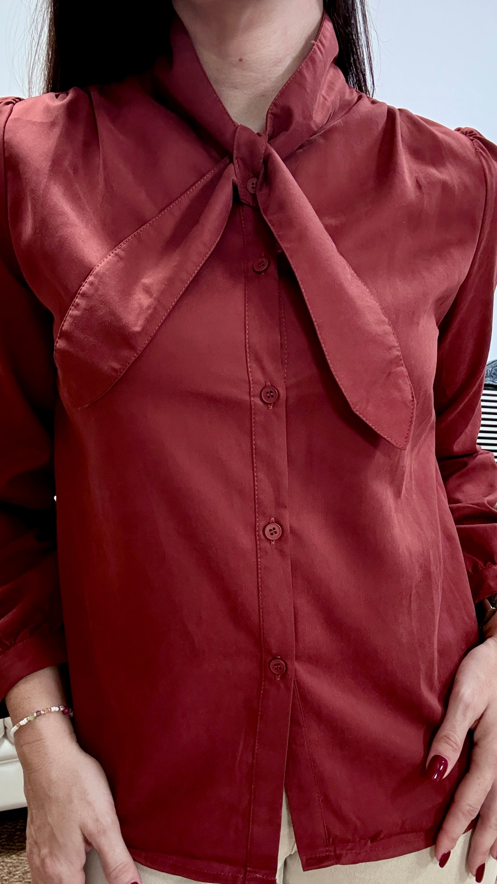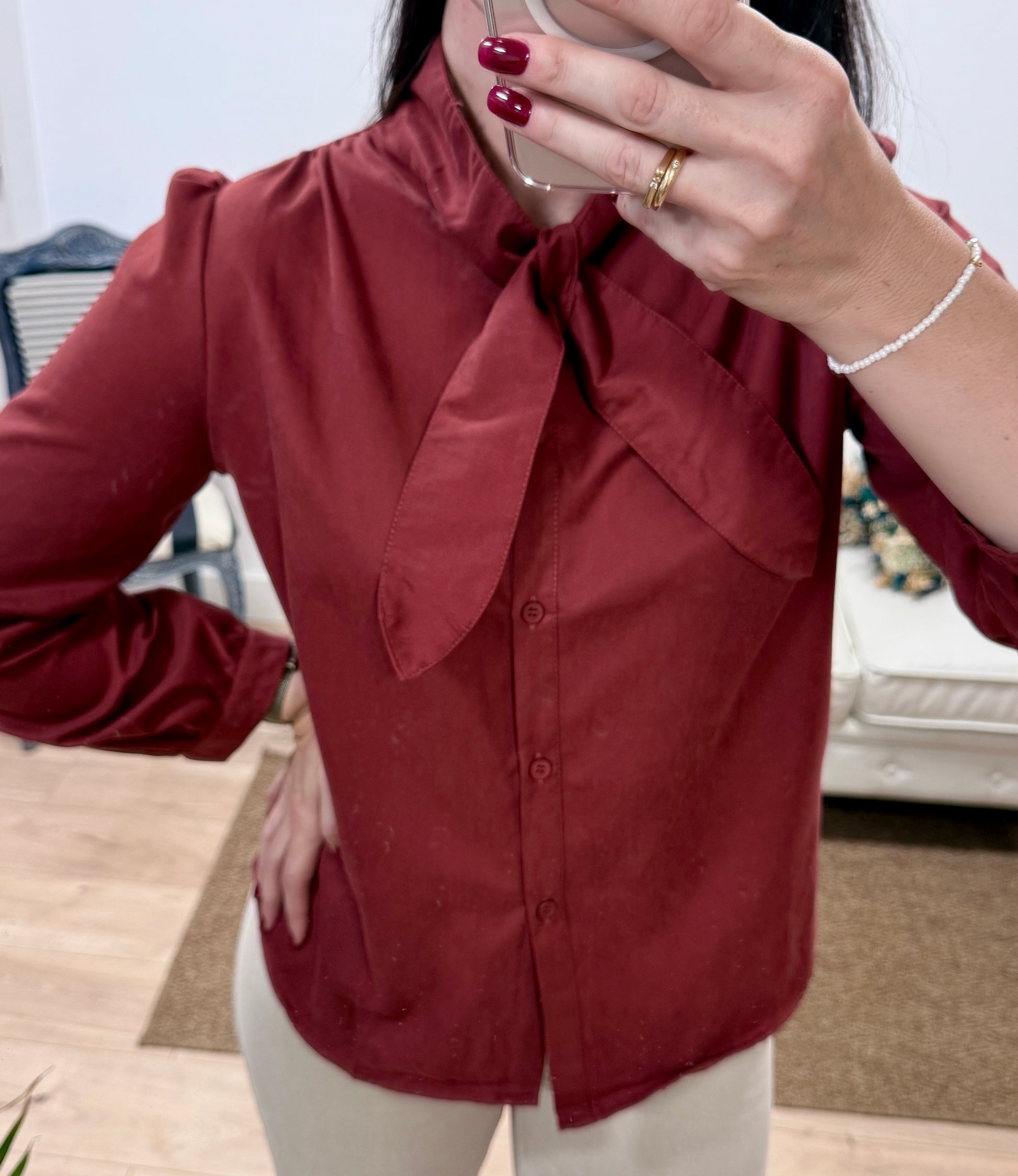 Blusa en color granate, tejido con tacto piel de melocotón.