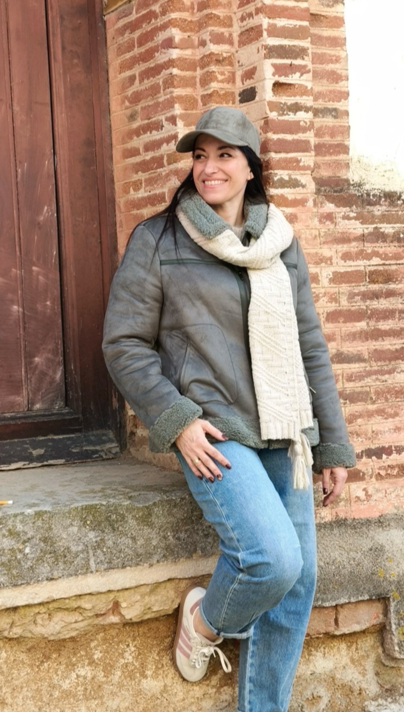 El interior efecto borreguito —también visible en el cuello, los puños y el bajo— añade un toque súper calentito que te envuelve sin aportar peso ni volumen. Gracias a su diseño doble faz, ofrece un extra de confort ideal para los días fríos, manteniéndote abrigada mientras sigues luciendo estilosa.