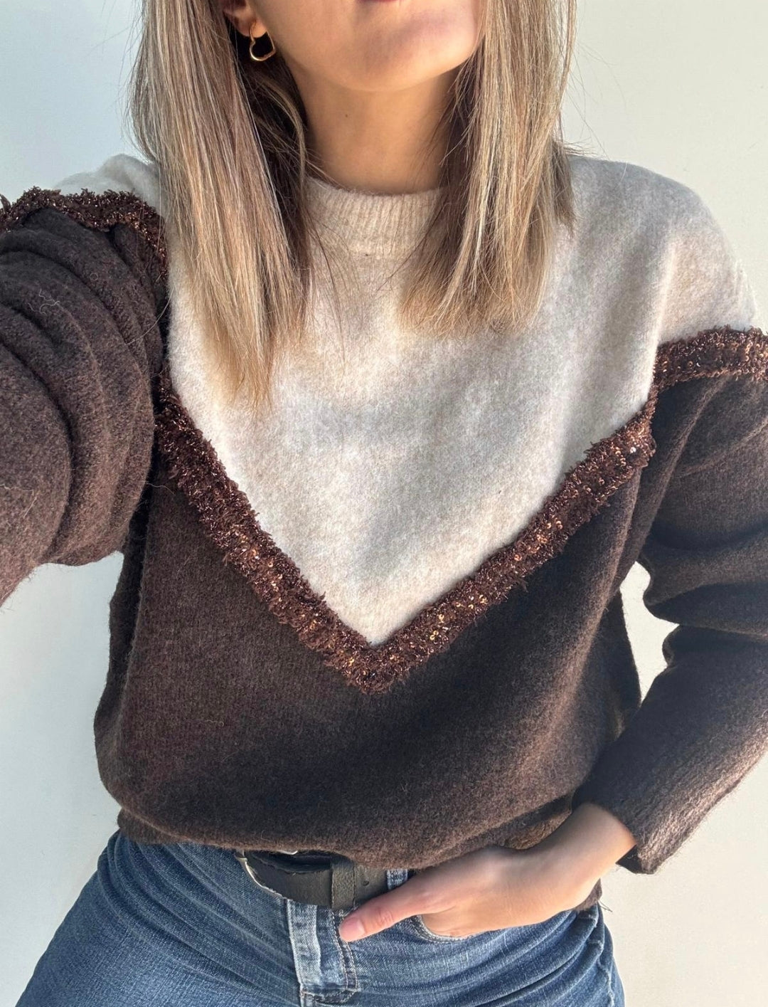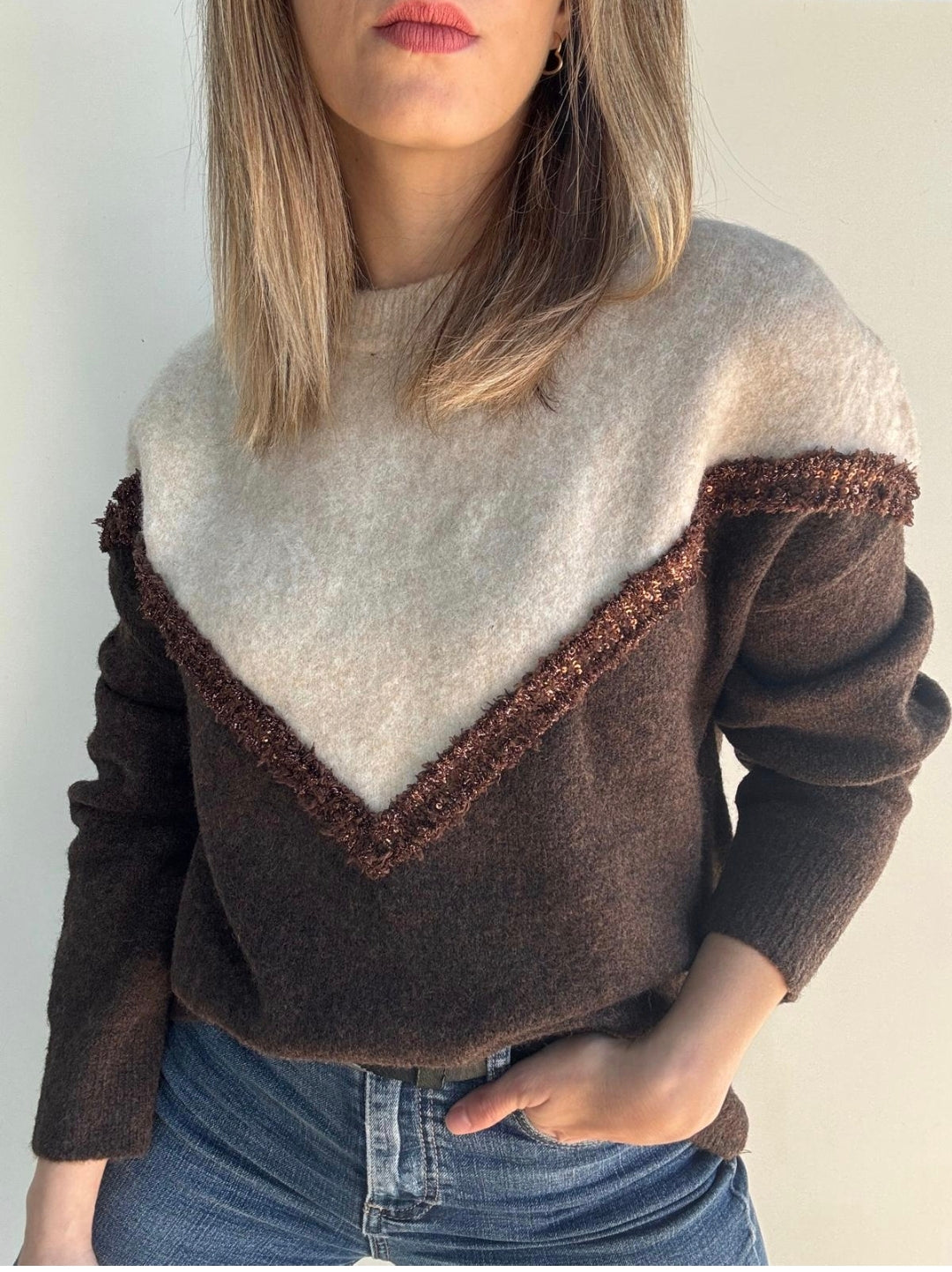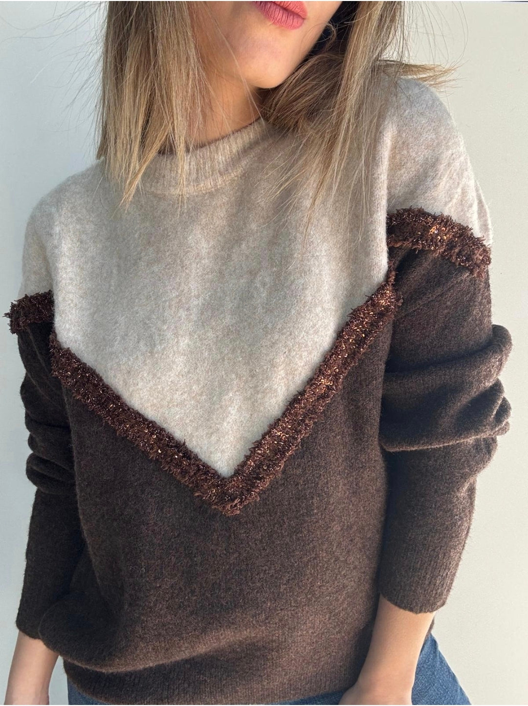 - Paleta Neutra Sofisticada: Combina un suave color beige en el escote con un cálido y profundo color chocolate en el cuerpo. Una mezcla atemporal y muy fácil de combinar.