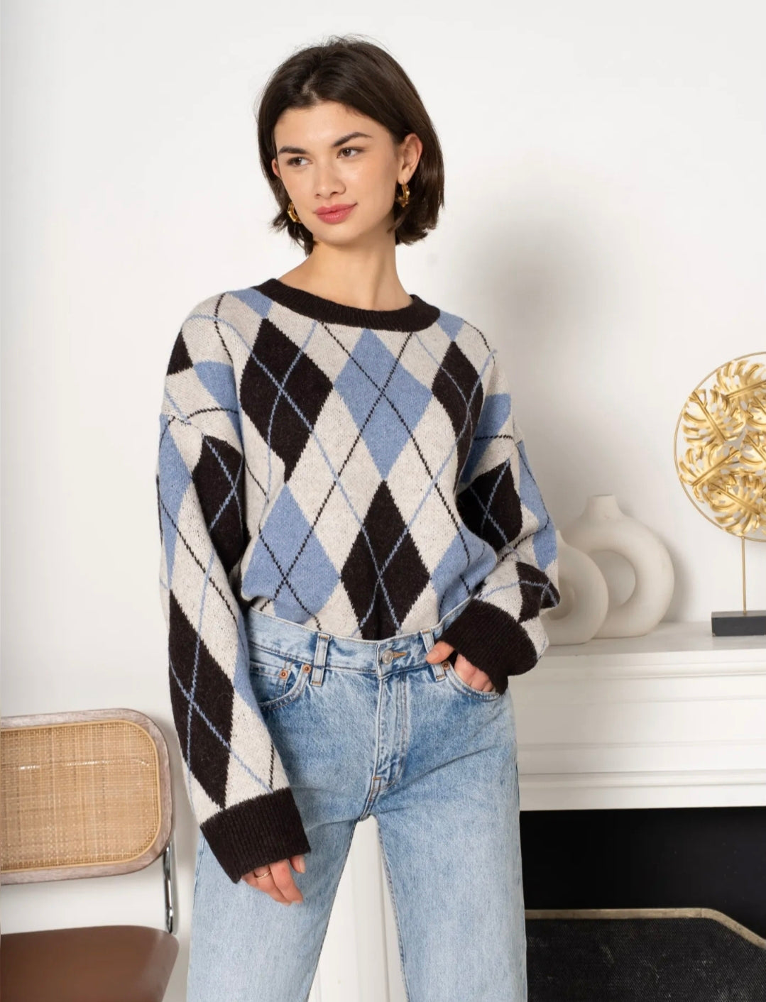 🛍️ ¡No esperes a que se agote! Consigue hoy mismo tu Jersey de Rombos Celeste y Café y redefine tu estilo.